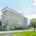 Decennialang heeft het Atrium onderdak geboden aan tal van (inter)nationaal gerenommeerde bedrijven. Het Atrium was een van de eerste gebouwen aan de Zuidas en het is altijd bijzonder populair gebleven vanwege zijn unieke transparantie, die met name tot uiting komt in de grote open ruimte (het ‘atrium’) waar zonlicht onbelemmerd naar binnen kan stromen, en in de vloeroppervlakken die soms wel 4500 m2 per ruimte bedragen. Het bestaande Atrium wordt uitgebreid met twee in het oog springende torens. (Beeld: MVSA Architects)